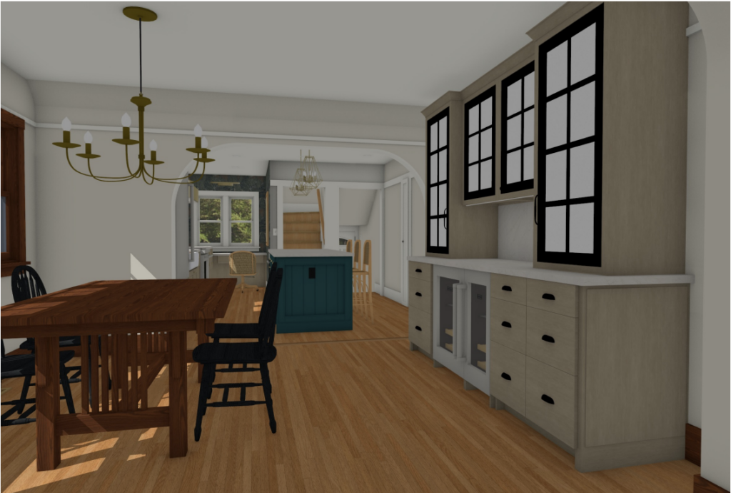 The original layout separated the kitchen from the dining room with a full wall and relied on a narrow hallway to connect the spaces, making the entire first floor feel smaller and more constrained than it actually was. While the footprint wasn’t necessarily small, the configuration limited natural light, reduced usable workspace, and disrupted the flow between rooms.